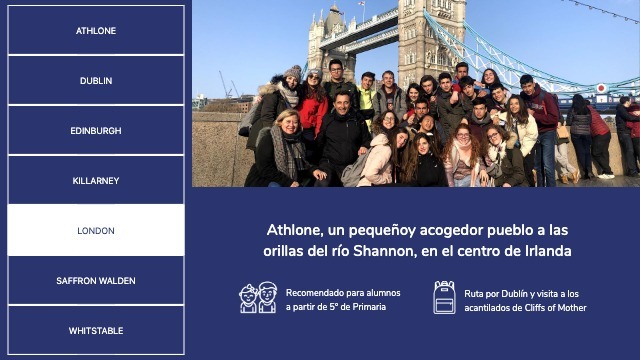 El programa consiste en una estancia de 7 días en uno de nuestros destinos, donde los alumnos vivirán una experiencia cultural y lingüística que nunca olvidarán. Con los métodos de aprendizaje más didácticos y nuestros profesores nativos, los estudiantes aprenderán sin dejar de disfrutar y hacer nuevas amistades. Además, realizarán actividades y deportes por las tardes y 2 visitas culturales a los lugares más emblemáticos de cada destino.